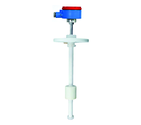 浮子(浮球、浮筒)沿導桿隨液位上下移動,浮子內有永磁體,導桿內固定有信號單元,磁系統作用于信號單元,發出電信號,經過調制輸出4~20mA、RS485,實現液位的連續監測。CN214系列浮子液位計的信號單元有干簧管和波導絲兩類: