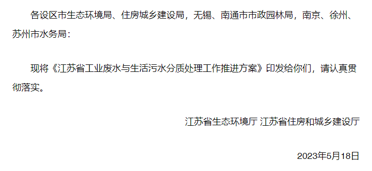 首頁 > 中核資訊 > 行業新聞行業新聞 > 資訊 | 《江蘇省工業廢水與生活污水分質處理工作推進方案》發布!