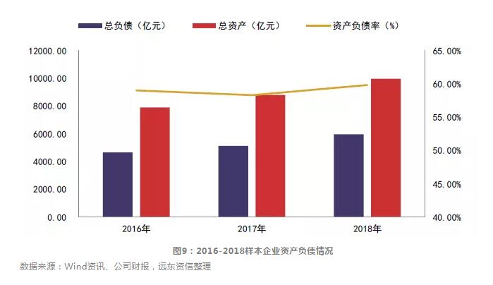 負債方面,2018年以來,由于行業投資規模持續增長,樣本企業負債規模持續擴大,增幅大幅增加。截至2018年6月末,樣本企業的負債總額合計為5966.96億元,較上年同期增加16.27%(圖9)。同期末,樣本企業平均資產負債率為59.83%,較上年末增加1.52個百分點,仍處于較高水平。由于水務企業業務收費周期穩定,收款情況好,通常來說經營性現金流較為充裕,且樣本企業中多為地方政府下屬的水務運營平臺,可得到地方政府較大力度支持,因此融資能力較強,較高的負債經營程度仍在可接受范圍內。