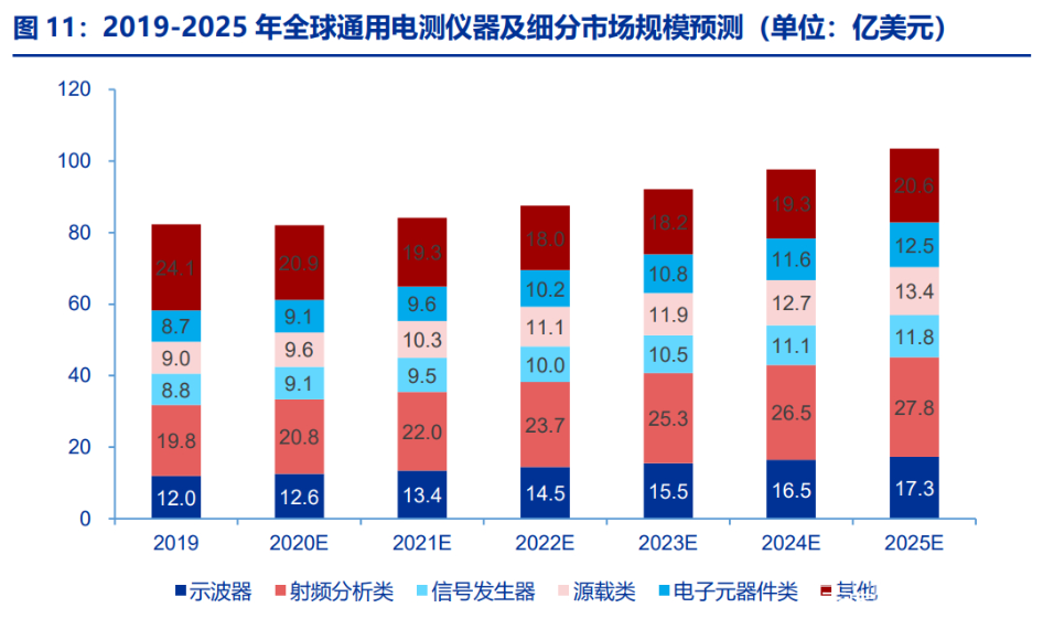 電子測量儀器是電子信息產業發展不可或缺的支撐保障,所有與電子設備有關的企業和行業幾乎都需要使用電子測量儀器。目前,航空航天、新能源汽車、物聯網、5G應用、射頻前端等行...