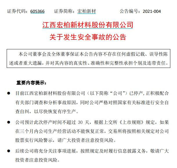 我司于2021年3月6日得知,2021年3月5日下午3:20分,宏柏新材的抗硫化返原劑生產車間在試生產過程中發生火災事故。當晚火災已撲滅,事故現場已得到有效控制。作為宏柏新材的設備供貨商之一,我們中核...