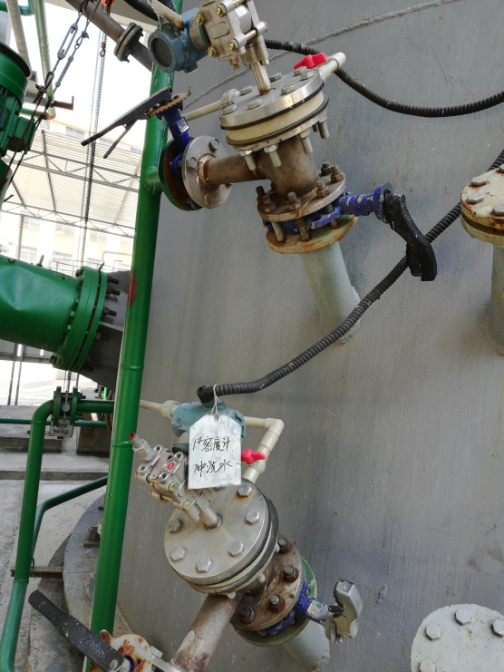 吸收塔漿液密度計控制著塔內石膏漿液的排放,保持塔內物料的平衡。若濃度低于某一定值,漿液需打回吸收塔再循環,若濃度高于設定值,則打至一級脫水系統。如果顯示不準確,特別是顯示數值偏低時,容易造成由于實際液位偏高造成的漿液倒灌等影響脫硫系統安全運行的問題,密度計顯示不準確,還容易造成塔內漿液排出難以控制,特別是在顯示密度偏低的情況下,塔內實際密度較高,可能會造成漿液濃度過飽和度偏高,出再嚴重的結垢現象。
