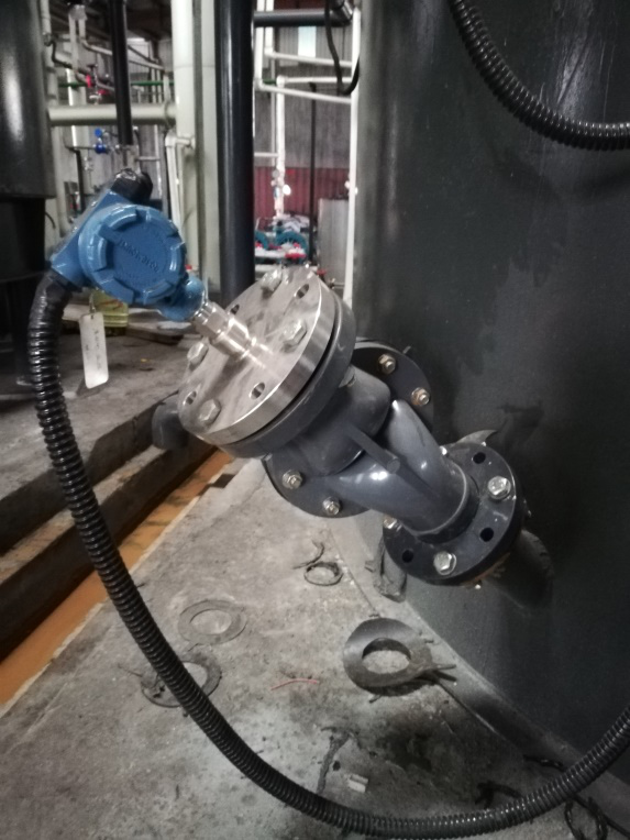 a.壓力式測量:通?,F場用兩個單法蘭液位計組合測量,在DCS中通過兩個單法蘭測量到的液位差來計算漿液的密度;還有一種制作成一體的有兩個壓力膜片的管道式在線密度計,測量原理和用兩個單法蘭液位計一樣。