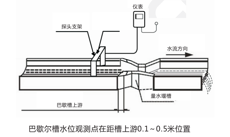 2、量水堰槽的上游最小要有大于5倍渠道寬度的平直段,使水流能平穩進入量水堰槽。