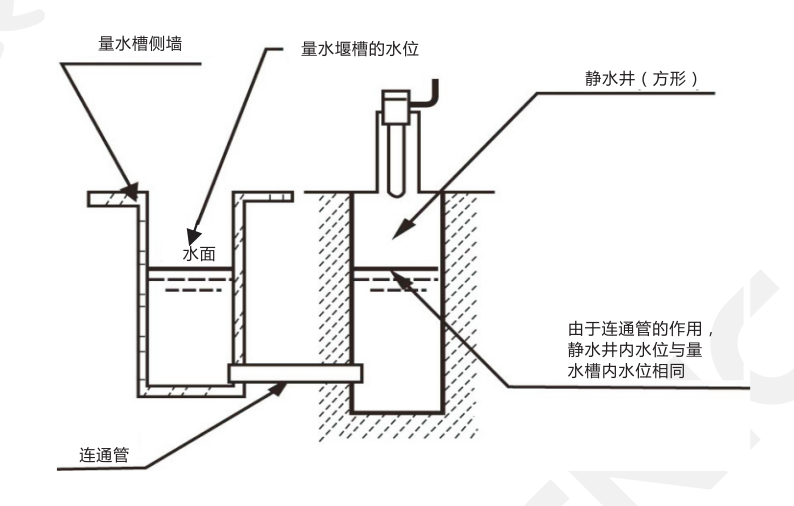靜水井內壁直徑要>500mm,內壁平整無任何凸起物和毛刺。探頭安裝后,探頭發射面距離最高水面≥0.04米。