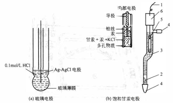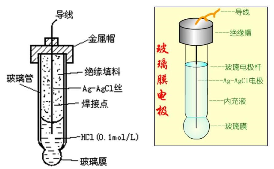玻璃電極:由具有氫功能的玻璃熔融吹制而成,電極電位隨氫離子活度呈線性變化,構成電位回路。
