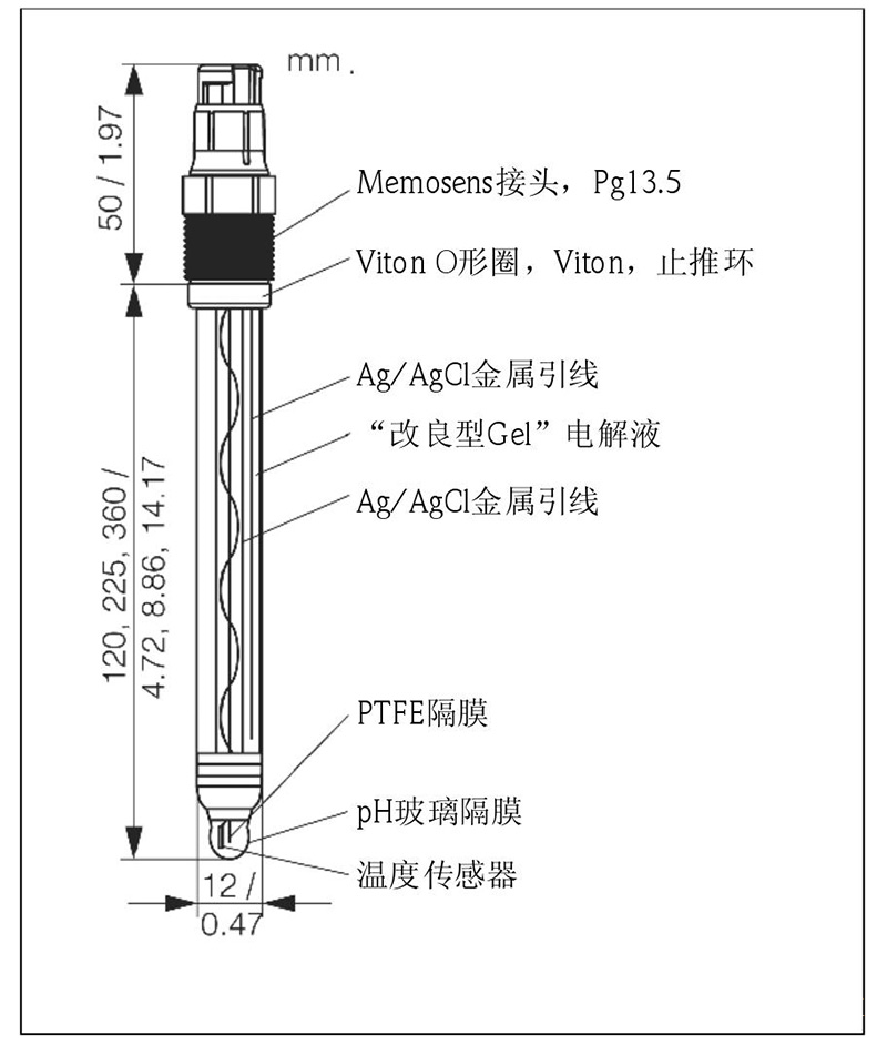 三復合電極:測量電極、參比電極和溫補電極復合成一體。