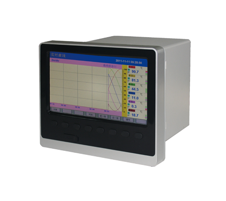 7英寸800*480點陣寬屏TFT高亮度彩色圖形液晶顯示,LED背光、畫面清晰、寬視角。 顯示內容可由漢字,數字,過程曲線,棒圖等組成,通過面板按鍵可完成畫面翻頁,歷史數據前后搜索,曲線時標變更等 |