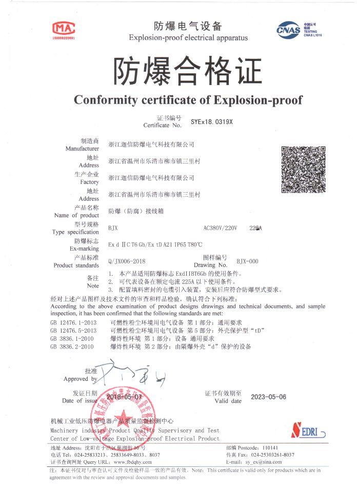 ATEX證書EX II 1/2G EEx ia IIc T6/T5/T4, SNCH 00 ATEX 3130X