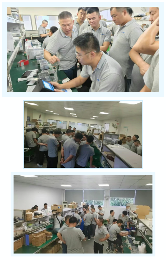 除了總結,本次會議還特別設置了實戰學習環節,常駐外地的同事到車間親自上手學習儀表調試,針對性進行技術交流,增強專業知識能力,為后續工作的推進筑牢根基。