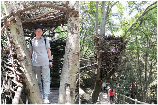 大家紛紛走進千年鳥巢。用樹枝搭建一起的小房子,別有一番趣味。