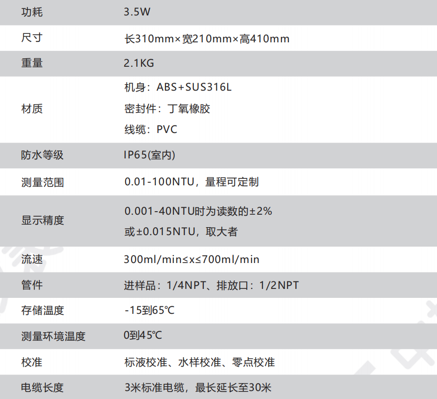 1.一種連續讀數的散射濁度計,專門用于低量程濁度監測;